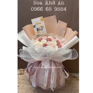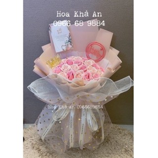 [Hoa sinh nhật - Có Nowship] Bó hoa sáp 4 lớp 20bông cao cấp phối lưới cứng. Thêm túi +30k