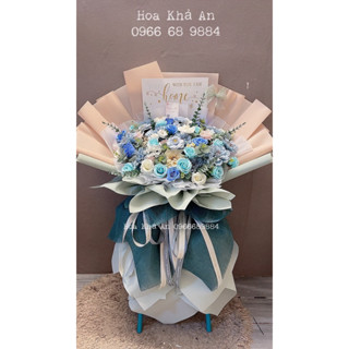 [Bó hoa siêu to 1.2x0.8m] Bó hoa sáp mix lụa siêu cấp tone xanh cực sang trọng. Form đẹp siêu chắc chắn, giấy Hàn k nhăn