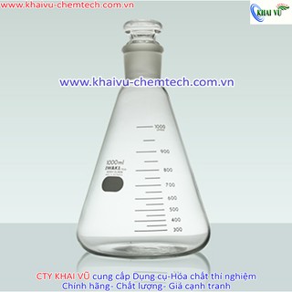 [HÃNG IWAKI - NHẬT] Bình tam giác Erlenmeyer thủy tinh chịu nhiệt 500ml 1000ml CÓ NÚT NHÁM KÈM