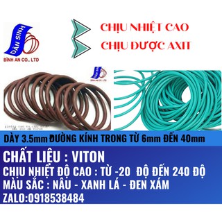 Dày 3.5mm * (6mm đến 40mm Đường kính trong) ,Gioăng VITON/FKM chịu nhiệt cao