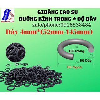 Dày 4mm * (52mm đến 145mm ,Đường kính trong) Gioăng cao su NBR70