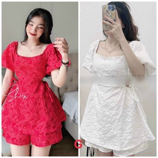 sét bộ đùi gấm áo kiểu rút eo cổ vuông tay ngắn hot