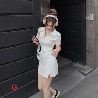 đầm thun gân ôm cổ trụ polo ngắn tay hot