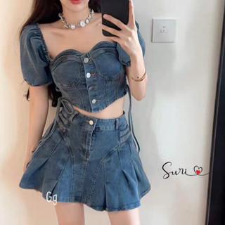 sét bộ jean vc xếp ly nhẹ áo nút trước đan dây 2 bên hot
