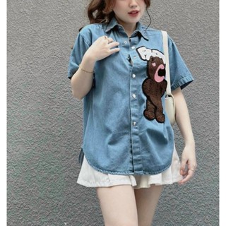 sơ mi jean QC thêu gấu hot