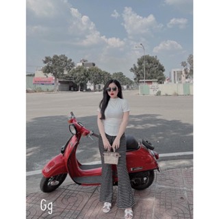 sét bộ dài quần sọc loe phối áo thun thêu hot