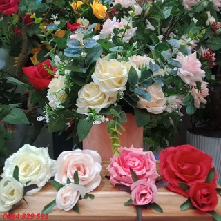 Hoa hồng trà cành lớn 3 bông, hoa giả trang trí