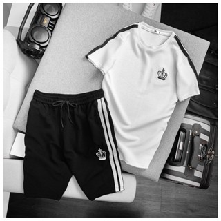 Bộ thể thao nam cổ tròn, bộ xốp nam phối sọc