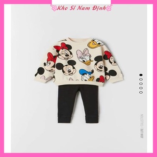 Đồ bộ bé gái nỉ bông dài tay thu đông in hình mickey disney Combo 2 bộ quần áo trẻ em