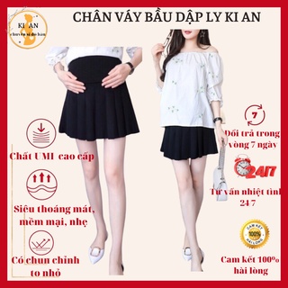 Chân váy bầu xếp ly Chất umi siêu mát siêu mềm mịn có quần bên trong☘️Cam kết xổ lông☘️size M, L(43~70kg)CVB02