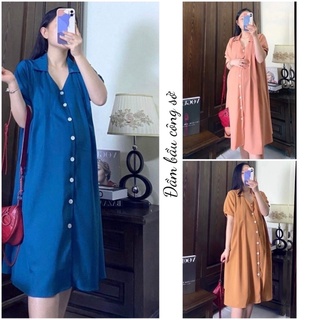 Set đầm bầu cổ sơ mi siêu xinh , chất siêu mềm mịn, siêu thoáng phù hợp cho mẹ bầu đi làm đi chơi