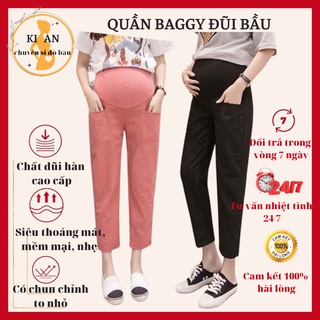 Quần bầu quần bầu baggy chất đũi loại 1 siêu mát Ko nhăn có đáp bụng và chun chỉnhSize từ S đến 3XL QB204