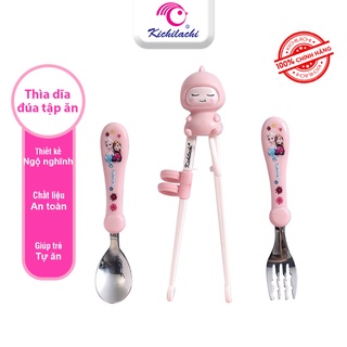 Đũa Tập Ăn Cho Bé Kichilachi Kèm Thìa Dĩa Hộp Đựng Tiện Lợi, An Toàn Cho Bé