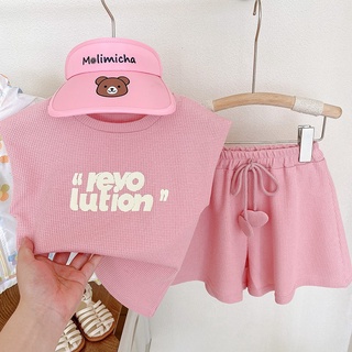 Bộ Đồ Thể Thao Áo In Chữ Phối Quần Short Màu Sắc Tương Phản Thời Trang Mùa Hè Cho Bé Gái