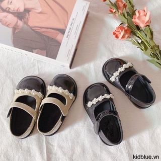 Giày hở ngón mũi tròn đế phẳng đính ngọc trai cho bé gái