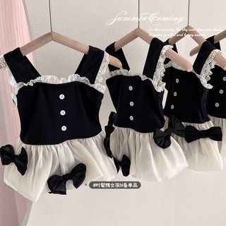 Đầm Hai Dây Phối Màu Tương Phản Thời Trang Cho Bé
