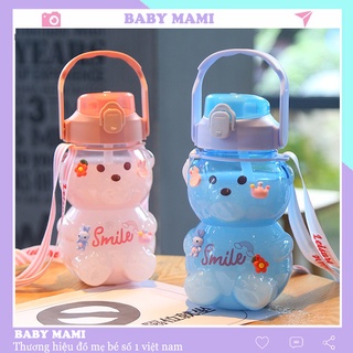 Bình nước cho bé hình gấu dung tích lớn có ống hút cực cute, Bình nước hình gấu cho bé mang đi học Bn24