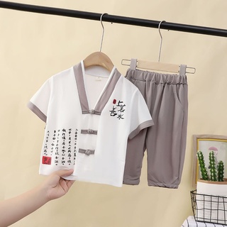 Bộ Cộc Tay Cho Bé Từ 6-27kg, Bộ Quần Áo Bé Trai Chất Đũi, Bộ Cộc Tay Bé Trai Cổ Viền Họa Tiết Chữ Nhật-Kids House