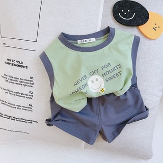 Bộ quần áo sát nách bé trai bé gái, Bộ cộc hè ba lỗ in hình mặt cười Nerver Cry chất cotton cao cấp cho bé từ 6-28kg