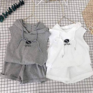 Bộ đồ quần áo cho bé trai mặc hè, Bộ sát nách ba lỗ APN có mũ cho bé 6-27kg Kids House