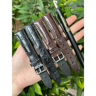 CÓ BẢO HÀNH Dây Đồng Hồ Da Bò Cao Cấp Đen - Nâu Vân Trúc TẶNG KÈM ĐỒ THAY DÂY