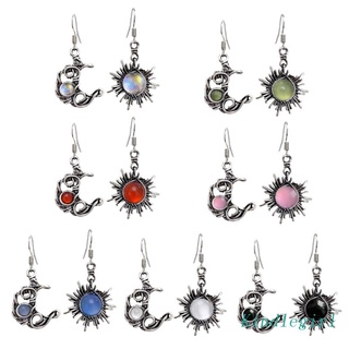 Bông Tai Hình Mặt Trăng Và Mặt Trời Đính Đá Không Đối Xứng Thời Trang Cho Nữ