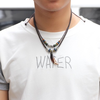 Vòng cổ Da Hai Lớp Đính Hạt Mặt Răng Chó Phong Cách Dân Tộc Cho Nam Và Nữ