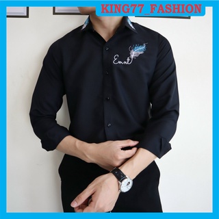 Áo sơ mi nam tay dài hàn quốc in họa tiết siêu đẹp vải lụa mịn chống nhăn hàng chuẩn shop uy tín giá rẻ KING77_FASHION