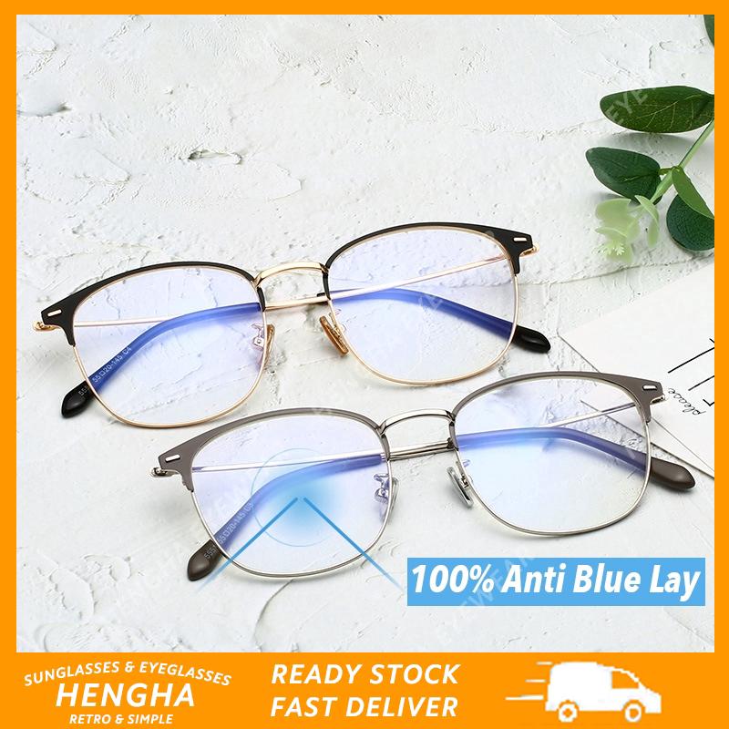 Mắt Kính Nửa Gọng Tròn Bằng Kim Loại Chống Ánh Sáng Xanh Thời Trang Hàn Quốc Cho Nữ