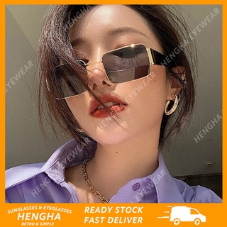 (HENGHA) Kính Râm Gọng Vuông Đôi Bằng Kim Loại Đơn Giản Thời Trang Retro Oversize
