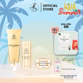 Bộ 3 sản phẩm Royal KN Beauty: Sữa rửa mặt 100g +tinh chất dưỡng 30ml+ kem dưỡng 30g( tặng mặt nạ +gel rửa tay )