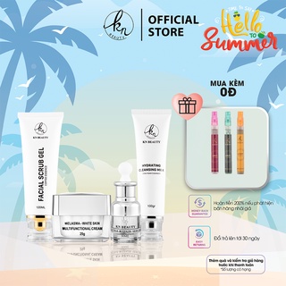 Bộ 4 sản phẩm Trắng Da Ngừa Nám KN Beauty Kem dưỡng+Serum+Tẩy tế bào chết+ sữa rửa mặt (tặng 2 nước hoa)