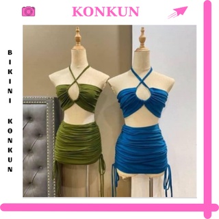 Bikini đồ bơi nữ đi biển 2 mảnh áo váy rút dây kín đáo KONKUN MS72