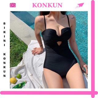 Bikini đồ bơi đi biển 1 mảnh liền thân cúp ngực 2 màu đẹp KONKUN MS33 ĐEN
