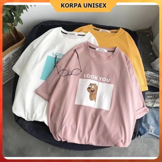 Áo thun tay lỡ form rộng gấu LOOK YOU 2 - Unisex nam nữ đều mặc được