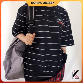 [ Ảnh Thật ] Áo thun tay lỡ form rộng sọc thêu Three words Eight Letter - Unisex nam nữ đều mặc được