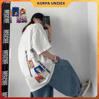 Áo thun tay lỡ form rộng phối hoạt hình họa tiết Supelmo - Unisex nam nữ đều mặc được