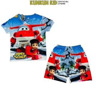 Đồ bộ bé trai chất Thun lạnh ngắn tay in 3d hình super wings Kunkun Kid TP370
