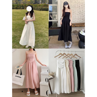 Váy hai dây maxi xếp eo pastel Ulzzang