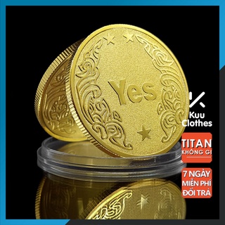 Đồng Xu Yes - No Coin - Quà Tặng Lưu Niệm Tiền May Mắn Thép Titan Không Gỉ - Đồng Xu Trò Chơi Quyết Định- Kuu Clothes
