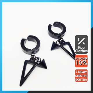 Khuyên tai nam tròn dạng kẹp KuuClothes màu bạc đen đơn giản đẹp nhỏ xinh - HT Tam Giác