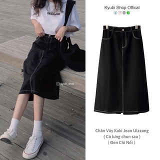 Chân váy Jean denim Midi Kyubi dài Xẻ tà Lưng cao dáng chữ A [Nhiều Mẫu] - Váy Bò dài Cạp cao Ulzzang Kyubi CVJ01