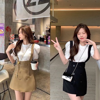 [ ẢNH THẬT]: Set áo tay bo phồng tiểu thư mix yếm kaki 2 màu đủ size kèm ảnh thật trải sàn