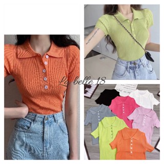 Áo Len Tăm Montoghi Cộc Tay Cổ Bẻ Cúc Ngực Dáng Ôm Body