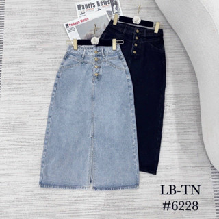 Chân Váy Jean Midi Dáng Dài Xẻ Cao 4 Cúc Váy Bò Cạp Cao Chữ A