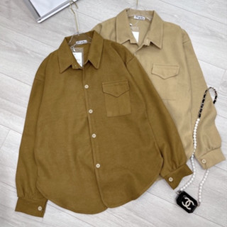 Sơ mi nâu nhung tăm túi ngực dáng thụng rộng