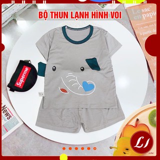 Bộ Quần áo cộc tay THUN LẠNH hình voi cho bé (5-16kg) QATE653- MÀU XÁM