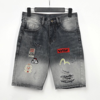 Quần short jean nam xám xướt nhẹ hình thêu cao cấp - chất vải denim dày dặn co giãn thoải mái - Lady-Hn Store88 W005