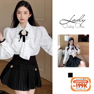 Áo sơ mi trắng nữ dài tay cổ nơ tiểu thư, sơ mi nữ đẹp ulzzang tay bo hàn quốc