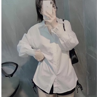 Áo thun tăm trễ vai dây rút bên vai kèm tag